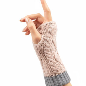 کلاه پوم پوم دار و طرح دار، در کنار دستکش نیمه انگشتی و شال رینگی توکرکی، ظاهری دلنشین و مدرن ایجاد می کند.